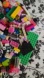Diverse LEGO bricks in vibrant colors. Includes pink, green, black, and blue pieces. Perfect for creative building. has some people and tiers see pictures and video
