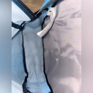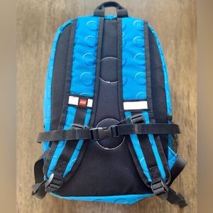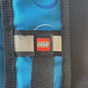 Bright LEGO backpack with colorful brick pattern. Features blue, red, yellow, green, and orange blocks. Perfect for young LEGO enthusiasts.