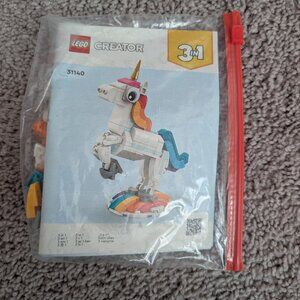 31140 — Magical Unicorn 3-in-1: build a unicorn, then rebuild into a seahorse or peacock for imaginative play.