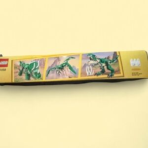 USED but comes all pieces and book Build a fierce dinosaur with LEGO Creator. Features green and white bricks. Perfect for imaginative play. LEGO Creator 3-in-1 Mighty Dinosaurs set (31058). This building set features 174 pieces and allows children to build a T. rex, which can be rebuilt into a Triceratops or a Pterodactyl.