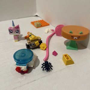 Extra toy tags and mini figures including cyborg 76028, Bart Simpson, unkitty lego movie, and Minecraft figures
