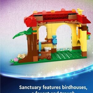 Sanctuary and 3-level tree – This creative building set features a building with a faucet, birdhouses and a watering trough, plus a tree with a cave, sleeping space and a lookout area on top