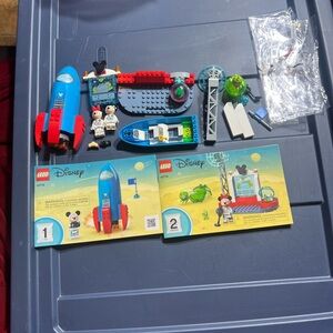 Join Mickey and friends on a space adventure. Features vibrant blue and red rocket. Perfect for young explorers. Has been assembled, has all bags, instruction book and all pieces.
