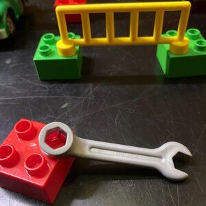 • Fuel barrel, wrench, and Duplo bricks for imaginative play