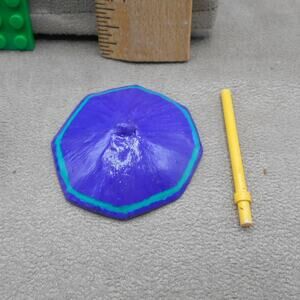 LEGO Fabuland 3601 Elton Elephant #2 Vintage 1981 Custom Paint READ. This is the vintage Elton Elephant 3601 set from LEGO Fabuland series. When I found him, the figure, chair, and table had been heavily colored on with permanent black marker. Removing the marker marred the original paint so I've custom painted these items. For Elton Elephant, I did stick to the vintage configuration, but for the table and chair, I gave them a modern makeover in purple and teal. The umbrella top was missing so that I molded out of clay and painted it to match. The cups, umbrella bar, and newspaper are modern LEGO brick replacements. Also included is a modern green base. No instruction sheet included. Great for display. I would not recommend heavy play. Please see pictures.