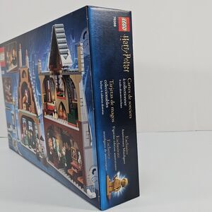 Celebrate the Wizarding World with this highly detailed building set featuring two iconic Hogsmeade locations: Honeydukes sweet shop and The Three Broomsticks pub. Includes 851 genuine LEGO pieces and seven minifiguresHarry Potter, Dean Thomas, Professor McGonagall, Madam Rosmerta, Mr. Flume, Mrs. Flume, and an exclusive golden Ron Weasley. Both buildings are richly decorated with snow details, authentic interiors, and a variety of furniture and accessories for immersive play or display. The set also contains four collectible wizard card tiles (random selection from a total of sixteen), plus three smaller outdoor builds: a street lamp, snowy bench, and a double-sided noticeboard with a wanted poster for Sirius Black. Suitable for ages 8 and up. Factory sealed and retired from production, making it a great collectors item or gift.