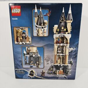 LEGO 76430 Hogwarts Owlery is a 364 piece Harry Potter set with 3 minifigs released in 2024. It features a detailed LEGO model of the Hogwarts Castle Owlery, including window ledges, an owl statue, and accessories for owl care, plus minifigures of Harry Potter, Cho Chang, and Argus Filch, and five owl figures.