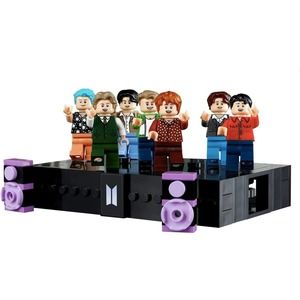 * 7 LEGO minifigures of the famous K-pop band – RM, Jin, SUGA, j-hope, Jimin, V and Jung Kook minifigures, each with microphone elements