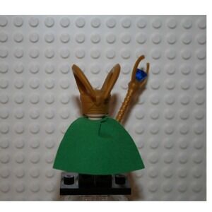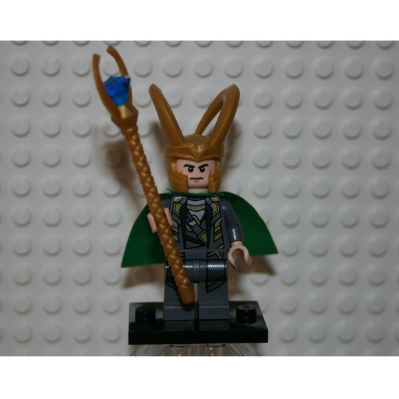 LEGO Loki Minifigure sh033a Marvel Avengers Gray Suit Green Cape Gold Scepter