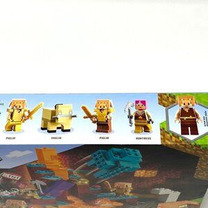 Includes 4 figures: Huntress with a bow and arrow and protective armor, a hoglin with a movable head, and 2 piglins armed with swords Also includes built-in explosion and rockfall features