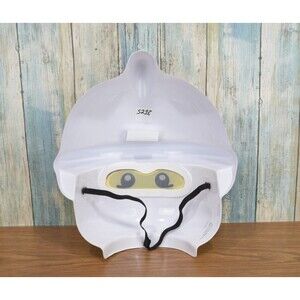 This oversized, molded mask captures the iconic yellow LEGO Minifigure head with a white hard hat, making it perfect for a Firefighter, Construction Worker, or general LEGO builder costume.