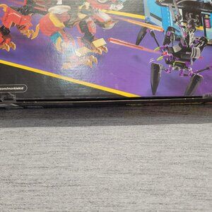 The fully posable Lion Guardian features snapping jaws and has a hidden, spring-loaded shooter in each of the drums, while the Spider Queen’s battle rig has movable legs and 2 spring-loaded shooters.