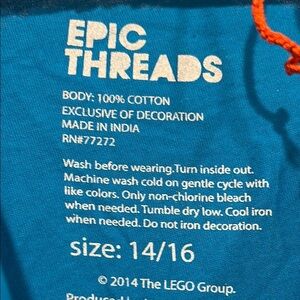 LEGO Ninjago masters Blue Graphic T-Shirt kids size 14 short sleeve crewneck