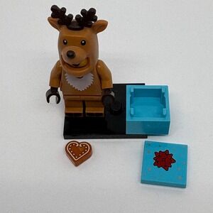 Keywords: LEGO, Minifigure, Reindeer Costume, Christmas, Holiday, Present Box, Gingerbread, Collectible, Toy, Building Toy, Festive, Stocking Stuffer