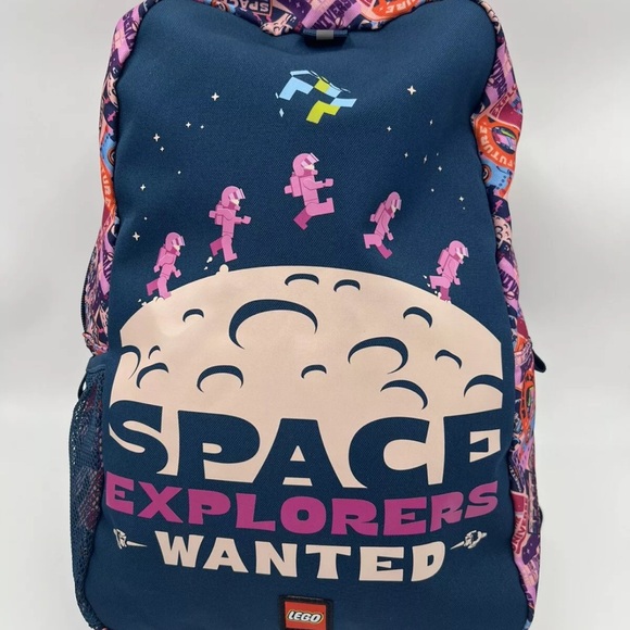 Vibrant LEGO backpack with space explorers design. Features bold graphics and colorful accents.