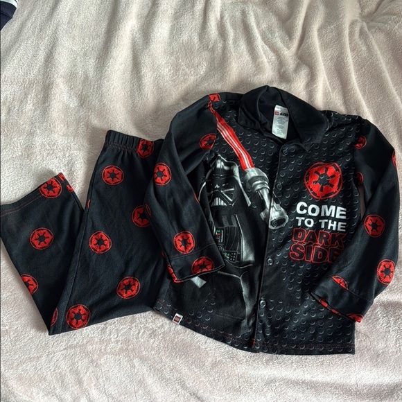 Star Wars themed pajama set. Features Darth Vader design. Comfortable and stylish for kids.