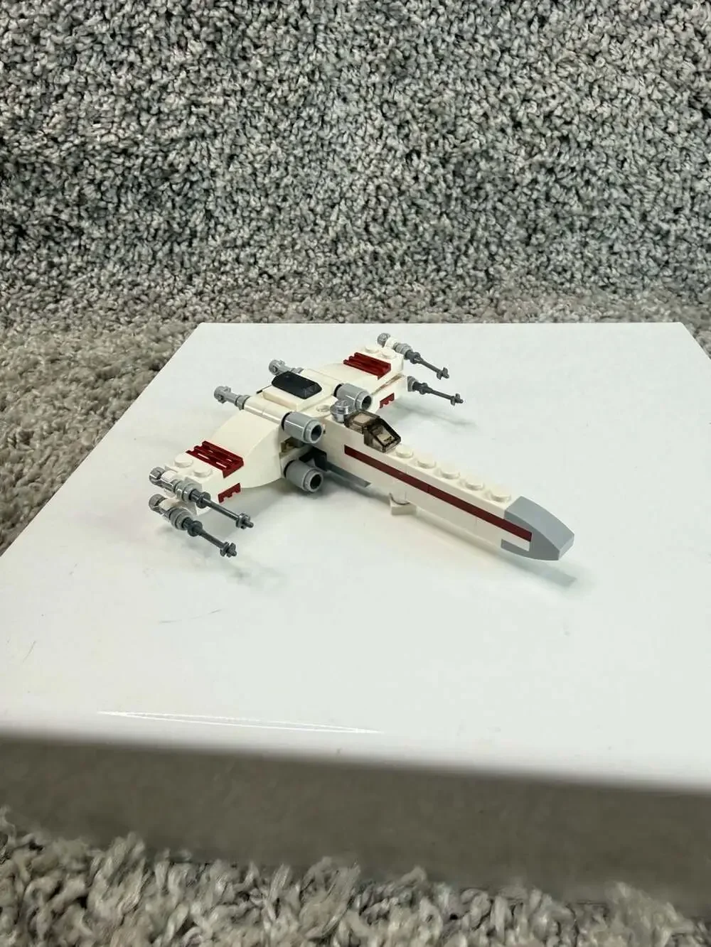 Great for display or as a desk accessory for Star Wars fans. Features adjustable wings and classic red and white detailing. Please note this listing is for the assembled model as shown in photos; original polybag packaging and instructions are not included. Excellent pre-owned condition with no missing pieces observed.