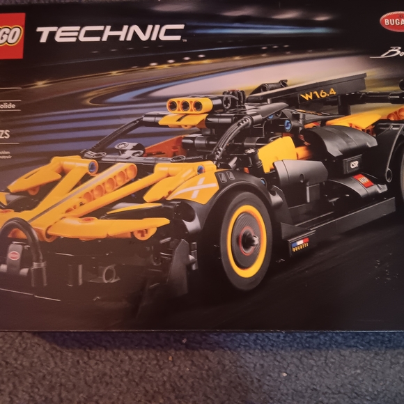 Build and race with the LEGO Technic Bugatti Race Car. Featuring a sleek yellow and black design, this set offers an exciting building experience for kids. 905 pieces. ages 9+