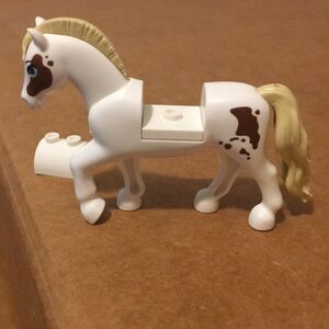 LEGO horse with cutout and movable neck with rain tail and roached mane and printed reddish brown spots pattern