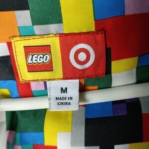 Labels/Branding: Co-branded neck label with LEGO and Target logos; small LEGO woven tab at hem