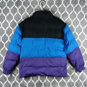 LEGO x Target Jacket Mens Medium Black Blue Puffer Colorblock Brick Print Lining