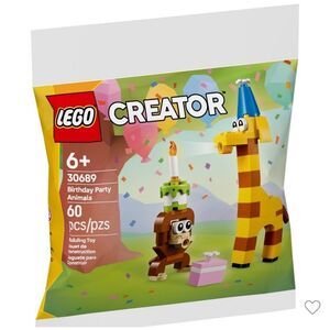 LEGO 30689 Creator Birthday Party Animals Set Celebrate with the colorful LEGO Creator Birthday Party Animals set. Featuring a playful giraffe and monkey, this set is perfect for imaginative play. Bright yellow and brown colors make it a fun addition to any collection.
