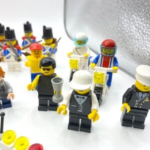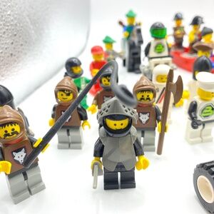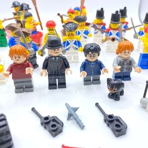 This is a nice lot with many weapons and pieces in hands. Most from late 1990's and lovingly played with at that time only. Others are more modern including Harry Potter. Great addition to your Mini Fig collecktion!