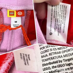 New with tags LEGO X Target Collaboration Kids Youth Size Medium Pink with a slight lavender purple tone. Work out Gym Class Jogger Sweat Pants with Elastic Drawstring Waist. Pink with Red stripes down the side, Back and side pockets. LEGO Logo on bottom Measurements in photos. No rips, holes, or stains. Comes from a smoke free environment.