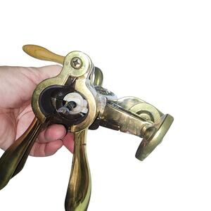 LEGRALE EUC VINTAGE ANTIQUE BRASS & WOOD TABLE TOP BOTTLE OPENER CORK SCREW