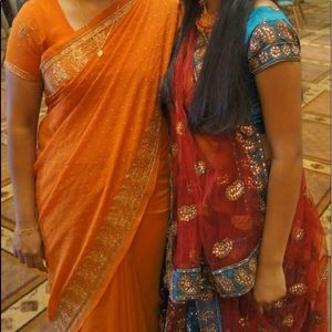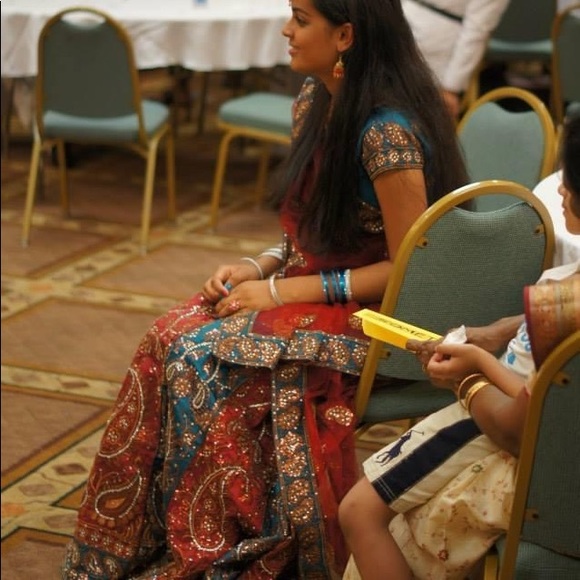 only worn once!! beautiful lehengha with stitched skirt and net dupatta. definitely needs another night out. perfect for garba