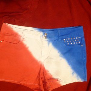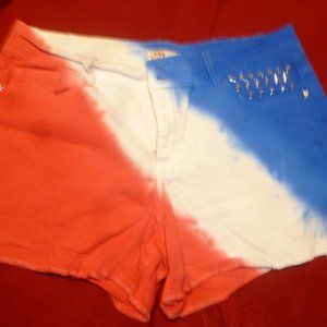 LEI Ashley LOW RISE Red, White, and Blue Tie-Dyed Denim Shorts Sz 17