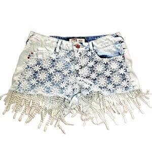 LEI Ashley Low Rise Womens Jean Shorts 1 Fringe Lace Hippie BOHO L.E.I.