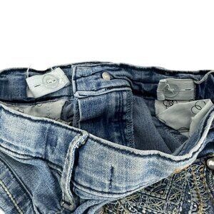 L.E.I Chelsea Lowrise Girls Denim Shorts Size 7 Embroidered Adjustable Waist