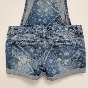 L.E.I. Printed Rolled Cuff Denim Short Overalls