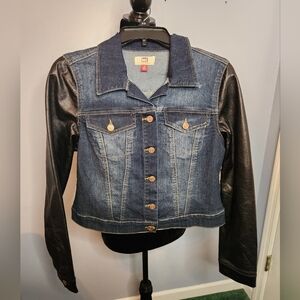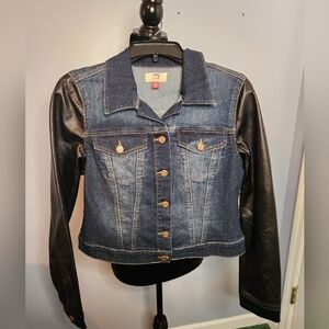 L.E.I Ryder Leather Sleeve Denim Jacket Size Medium Juniors NWT