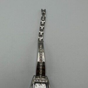 L.E.I. Watch Women Silver Tone Barrel Case Rhinestone Accents New Battery 7"