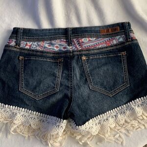NWOT L.E.I. Junior’s Sz 3 lowrise shorts with lace fringe. Perfect for summer