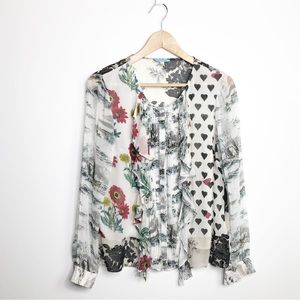 LEIFNOTES by Anthropologie Queen of spades sheer mixed media button down blouse