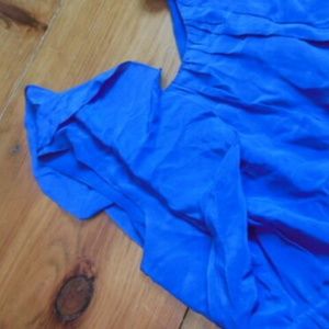 Blue Ruffle Side Silk Dress. Size 4 100% silk dress in lovely blue - sometimes I see it listed as purple?. Flutter sleeve. Belted waist. Liner. V-back. WOW!! EUC