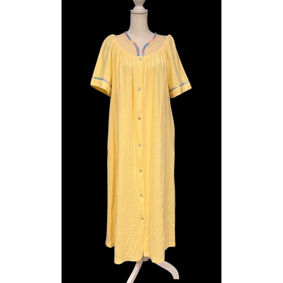 LEISURE LIFE Vtg YELLOW Housecoat Robe Short Sleeve Snaps Pockets Sz PM