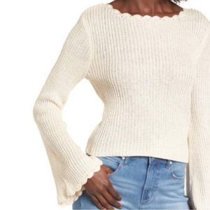 LEITH Beige Long Bell Sleeve Wide Neck Sweater Size XS NWT