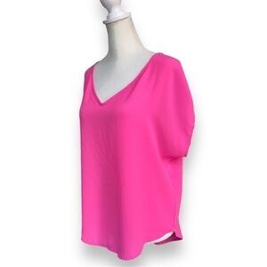 LEITH Hot Pink Short Sleeve V-neck Blouse | Size Small