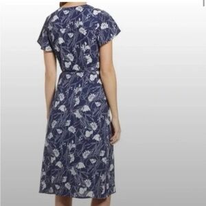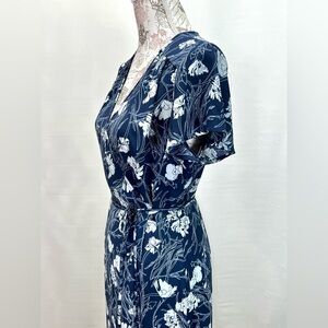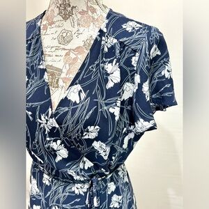 LEITH Navy Blue and White floral Wrap Midi Dress with Flutter Sleeves size M