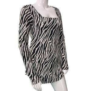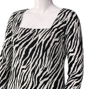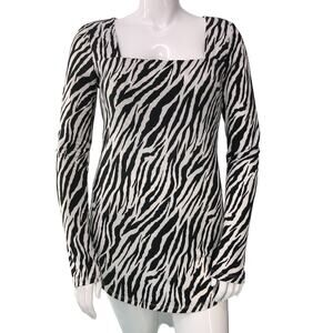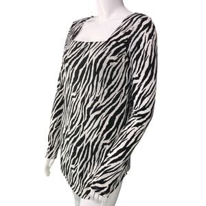 LEL Long Elegant Legs Womens Sz M Zebra Print Tunic Top Stretch Square Neck VTG