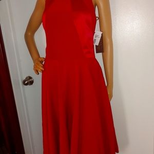 LELA ROSE 10 RED RACER BACK SKATER DRESS