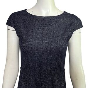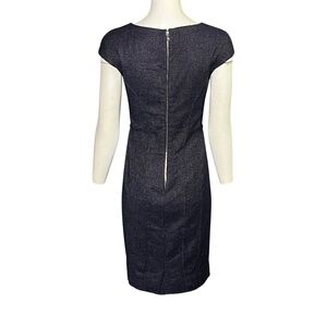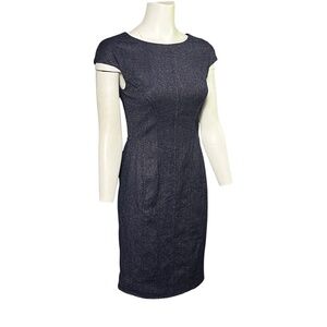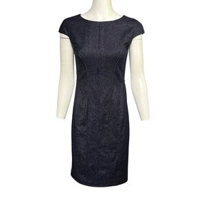 LELA ROSE Dark Blue Fitted Seamed Sheath Dress Cap Sleeve Boat Neck Size 4