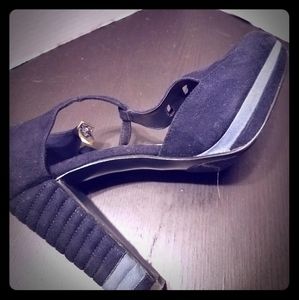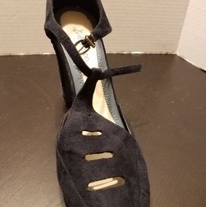 Beautiful 1inch platforms in navy blue and contrasting blue on the platform and the heels. The designer originally for weddings. These heels are 4in with a i inch platform. Really great condition.