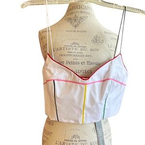 Lela Rose's crop top highlights the seams with vibrant piping. Cut with a sweetheart neckline, this dynamic style features spaghetti straps.