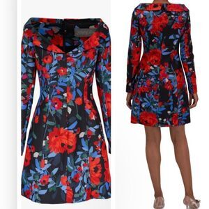 LELA ROSE Black Multi Open Neck Seamed Mini Dress Size 12 NWT $1590