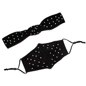 Made from soft jet stretch cotton blend embellished with heat set pearls, this reusable mask and headband set is ideal for all day wear.